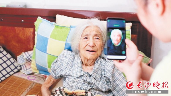 (开福区落实市党代会精神,优化社保服务,工作人员预约上门,轻松为行动不便的老人“刷脸”认证。 李卓 摄)
