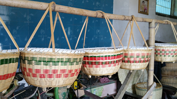 以往,钟美光都是把菜篮等挑到镇上去卖,如今中州屋场的建设,吸引了外地游客前来观光,把菜篮往家门口一挂,就有人前来购买,生意好时,一天能收入500元左右。但他闲时更多是给亲朋好友编织,既表心意也为保留手艺。“互相着想嘛,亲戚朋友们有时也会过来帮忙做点农活”。