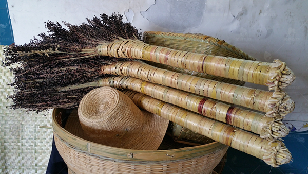 (用竹子编织好的农家什物。)
