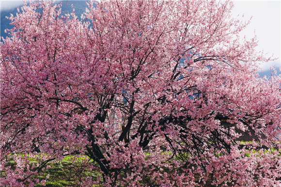 野生桃花高大古老,开得繁茂。西藏芒康旅游局供图 华龙网发