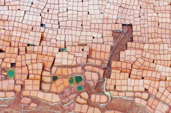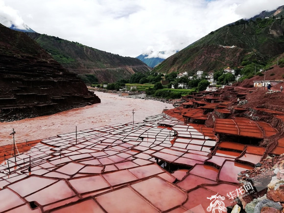 由于澜沧江两岸的土质不同,盐井盐田自然形成了“红盐”和“白盐”的奇观:江东出产白盐,江西则出产红盐。