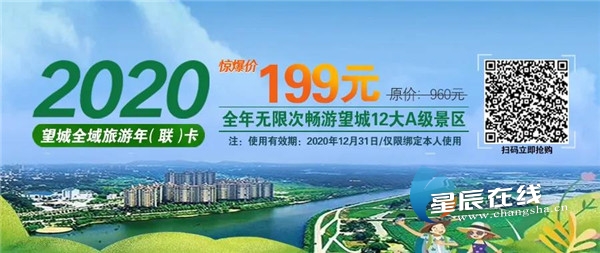 199元,一张望城全域旅游年(联)卡,新华联铜官窑古镇、贝拉小镇、黑麋峰国家森林公园、柏乐园等在内的12家A级旅游景区全年无限次畅游,持卡还能享受望城各大景区、酒店、民宿、商场、商户、文旅企业的各类优惠。