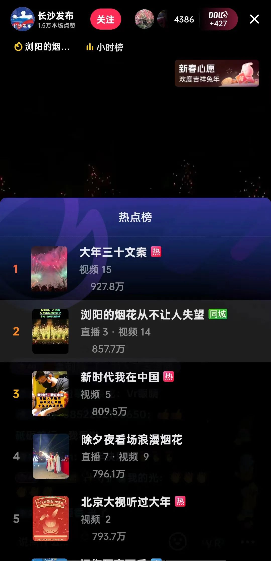 即日起至大年初六,在长沙发布抖音天天都能看焰火!