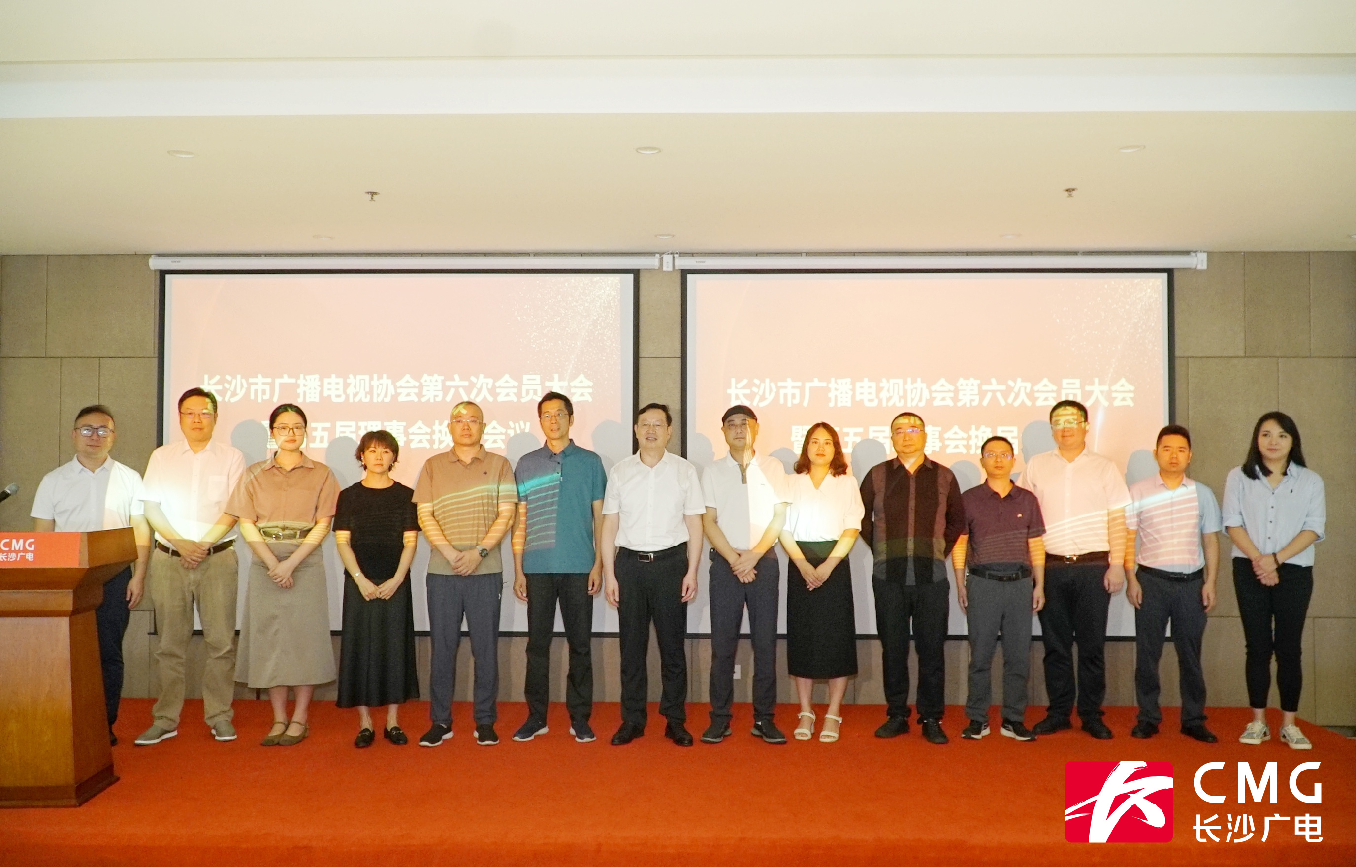 (长沙市广播电视和网络视听协会会长副会长秘书长合影)