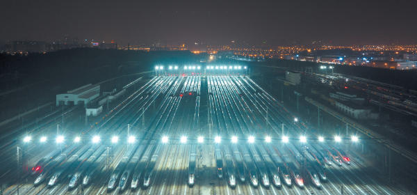 百组动车组列车集结完毕,如同一支“陆地舰队”,整装待发。