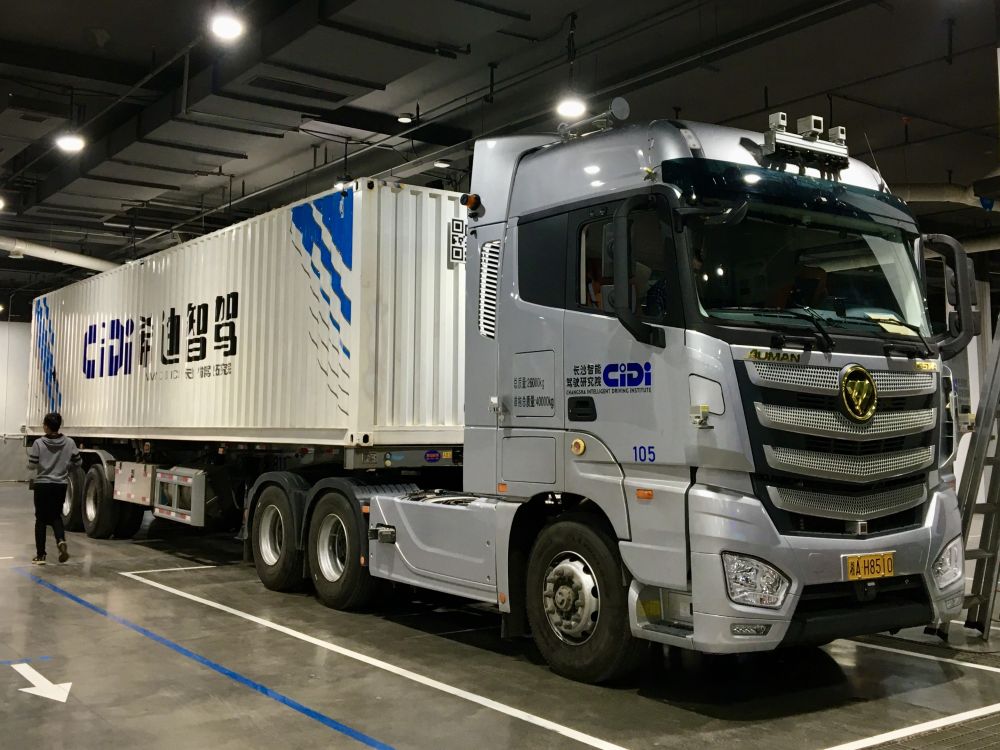 (湖南长沙市智能网联汽车测试区内的智能重卡。新华社记者苏晓洲摄)