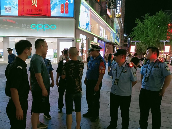 (图为长沙市天心区执法人员对黄兴南路步行街户外直播进行文明劝导。长沙市天心区委网信办供图)