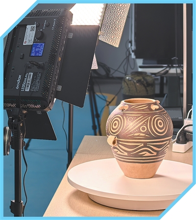 湖南省长沙市马栏山视频文创产业园的数字文博AIGC(人工智能生成内容)实验室,智能设备在尝试对文物模型进行数字化采集。资料图片