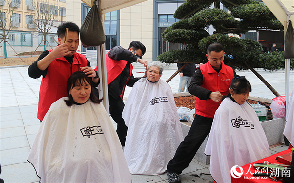 雷锋志愿者为群众免费理发。人民网记者 刘宾摄