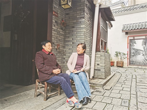 程蓉(右)与老街坊聊天。 通讯员 摄