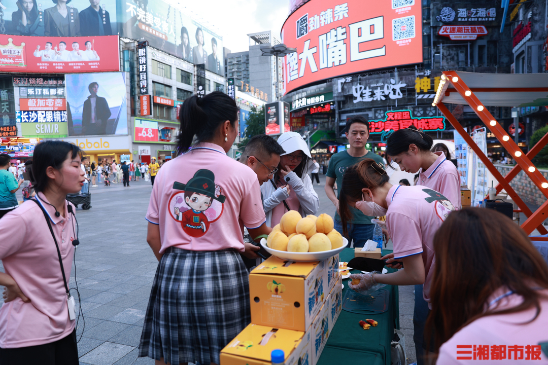 巷子口黄桃在长沙步行街进行展示展销。