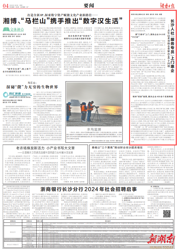 长沙市2023年底启动专精特新中小企业就业创业扬帆计划政策宣讲活动,截至1月8日,已为湖南湘江新区117家专精特新中小企业送上量身定制的“政策大礼包”。这是该市人社部门惠企帮扶的一个缩影。