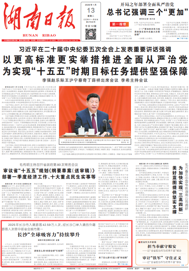 2025年长沙市入境游客42.59万人次,经长沙口岸入境的外籍游客人次居中部省会城市第一