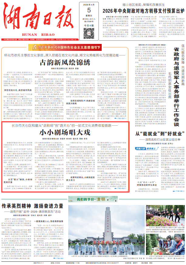 星辰在线4月5日讯 据湖南日报(全媒体记者 张福芳 彭诗思 通讯员 周晓 李旦)报道