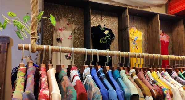 (李丽华说自己经营的手工定制服装店,与这条古色古香的老街很搭调。)