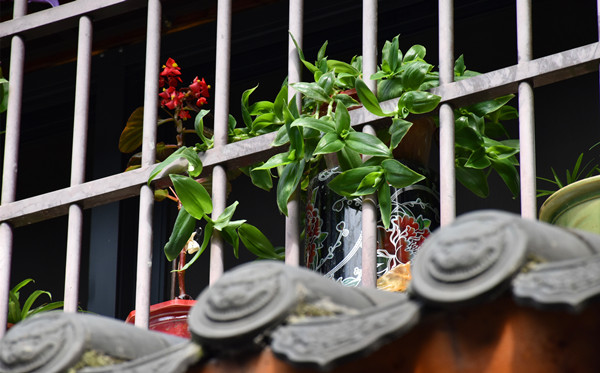 (青砖老宅,仿古挑檐上,处处透露着勃勃生机。)