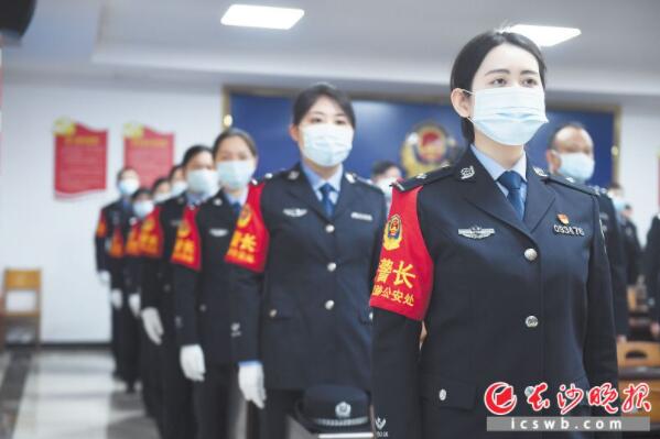 星辰在线1月28日讯 据长沙晚报(全媒体记者 邓艳红 实习生 张一帆 通讯员 朱红梅)报道,28日,2021年春运拉开帷幕。27日上午,长沙铁路公安处在长沙乘警支队会议室举行高铁女子分队成立暨授旗仪式,昂扬的国歌声中,7名队员英姿飒爽,接过高铁女子分队队旗。她们在2021年春运开启之日踏上值乘高铁之旅,将担当起守护旅客平安的重任,成为千里铁道线上一道靓丽的风景。