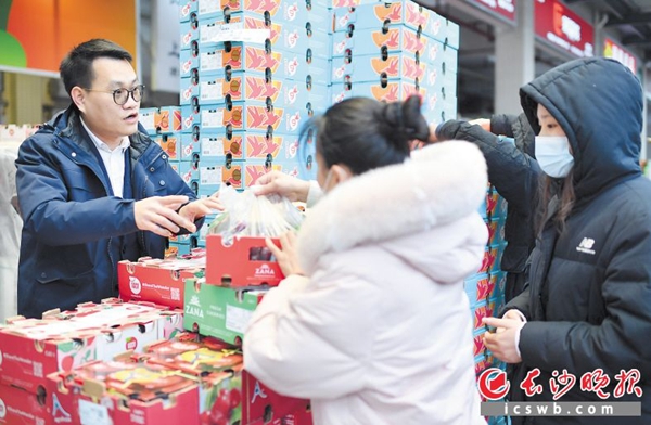 红星水果市场是中部地区最大的水果批发市场,前来采购的客户来自周边省份和湖南各市州,在这里可以一站式淘遍海内外优质丰富的水果。1988年出生的陈星羽9年前从广东来到长沙,在水果行业摸爬滚打,到现在已拥有800余平方米门面,员工60多人。临近春节,市民对水果的消费需求不断“升温”,陈星羽更是忙得不可开交。