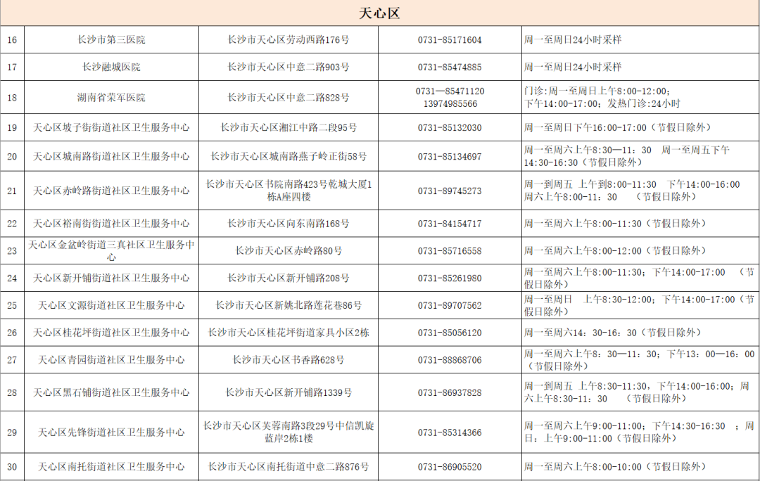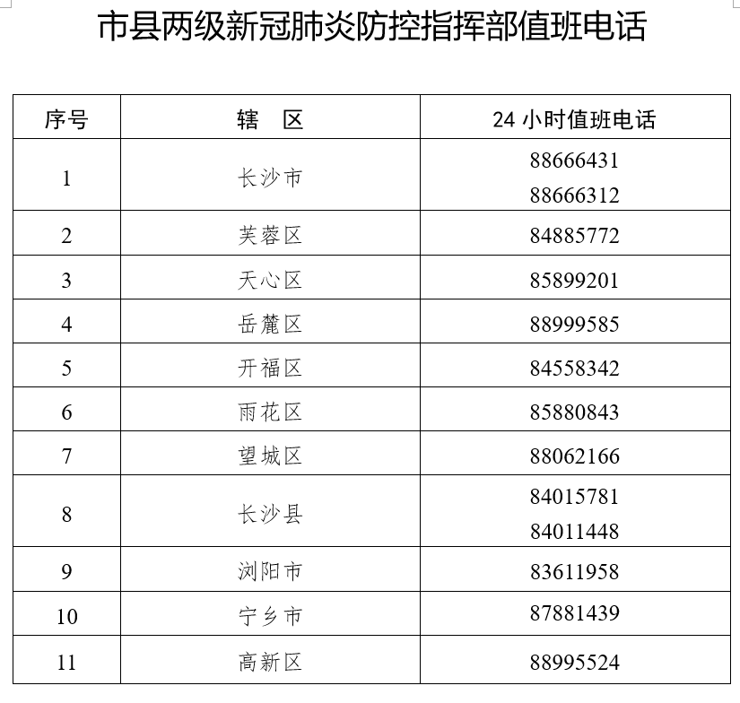近期全国疫情形势复杂,市民群众主动开展核酸检测的需求增大,为方便广大市民群众以及来(返)长朋友们进行防疫政策咨询和就近开展核酸检测,长沙疾控为您重新整理了全市各区县疾控和防控指挥部值班电话以及全市218家核酸检测点(含24小时核酸检测点)。