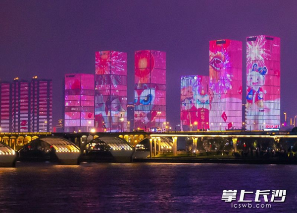 (今年春节期间,长沙“一江两岸”夜景灯光秀已开启“春节模式”,用憨态可掬的萌虎灯光秀,陪伴广大市民朋友欢度春节。长沙晚报全媒体记者 邹麟 摄)