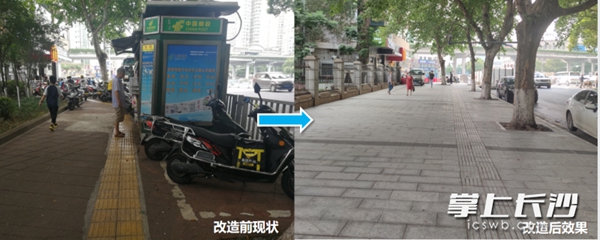将建筑前区与道路空间一体化规划和改造,商业路段取消建筑前区停车,解决道路通行不畅、无障碍设施缺失等问题;按照“以人为本”理念,交叉路口“大拐弯”变成了“小拐弯”,变成了与人友好示范路口,在学校门口划出安全舒适的候学区;通过多杆合一、多箱合一,释放更多道路空间,打通人行瓶颈……位于雨花区的劳动西路(芙蓉路—韶山路)提质改造工程完工后,原来“老破旧”的道路实现向“新靓美”的华丽转身,成为一条“精美长沙”示范街道。