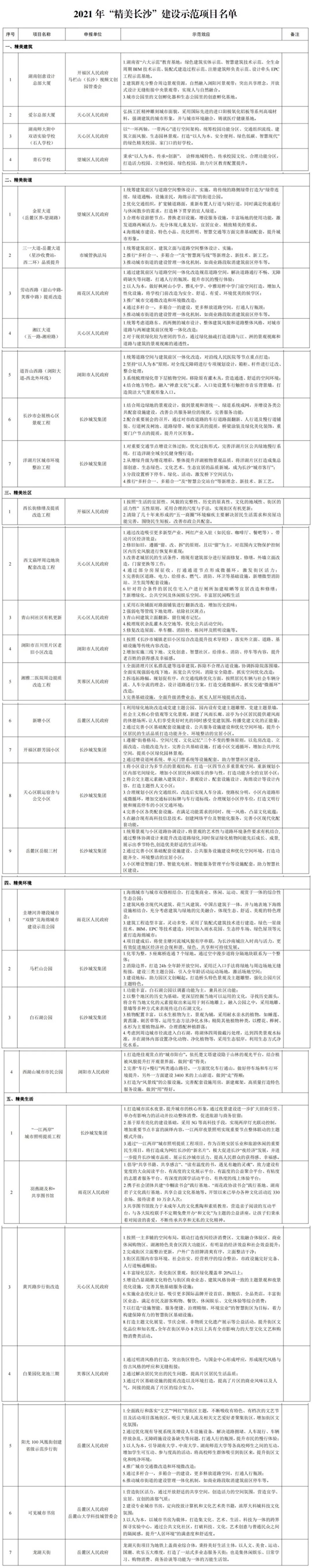2021年“精美长沙”建设示范项目名单