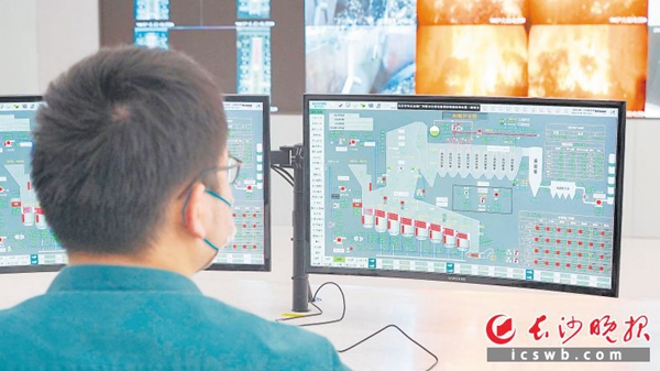 (军信股份员工正在远程监控自动化系统。均为长沙晚报全媒体记者 刘晓敏 摄)