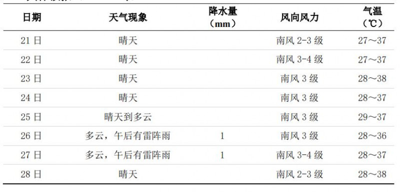 星辰在线7月22日讯据(长沙晚报掌上长沙全媒体记者 张洋子)报道火力全开的长沙,将一直热到月底了。长沙市气象台今日发布最新预报,预计未来一周长沙以晴热高温天气为主,最高气温36℃至38℃,其中26日至27日,午后局地有雷阵雨。