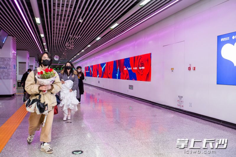 这次,长沙浪漫的小心思延续到了更多人身边。相信细心的朋友已经发现,在五一广场地铁站3A出口和芙蓉广场地铁站,也能打卡同款浪漫“爱心”。