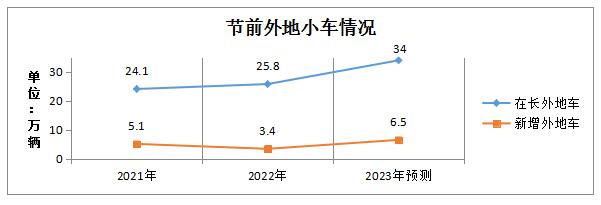 值得注意的是,节前外地来长车流增长迅速。预计今年五一节前在长外地车为34万辆,较去年增加6.5万辆。