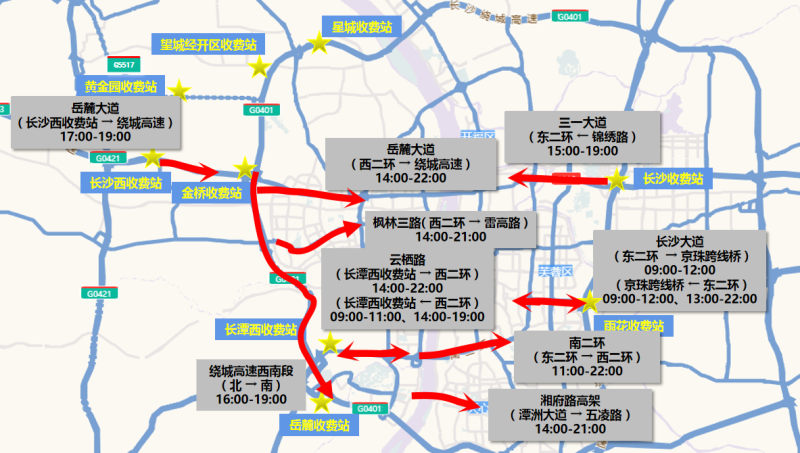 今年假期长沙举办多个大型活动,对片区交通影响较大,相关道路将有交通管制,请市民游客提前留意。