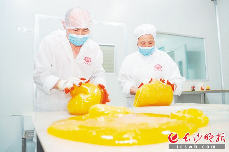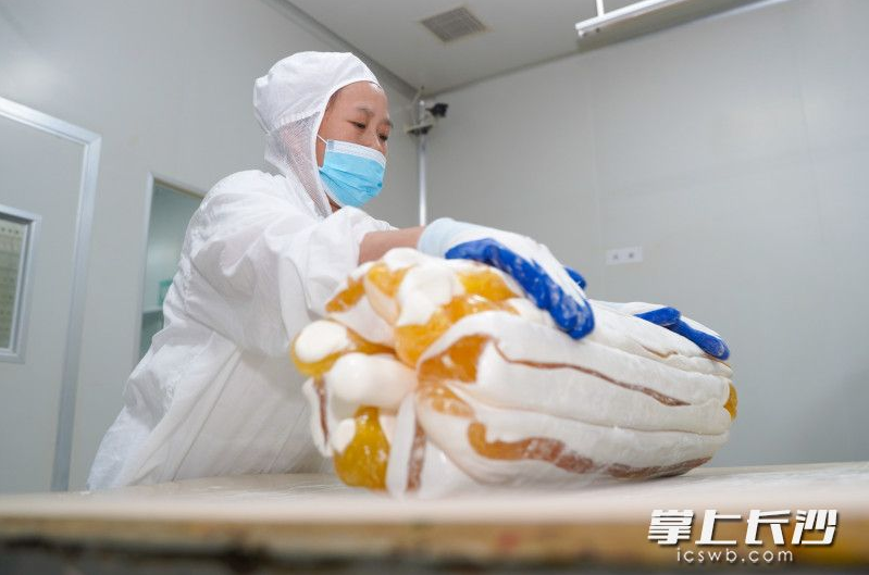 湖南双娇食品有限公司的糖果生产车间里弥漫着香甜的气息,工人正在揉搓原料。 均为长沙晚报全媒体记者 刘晓敏 摄