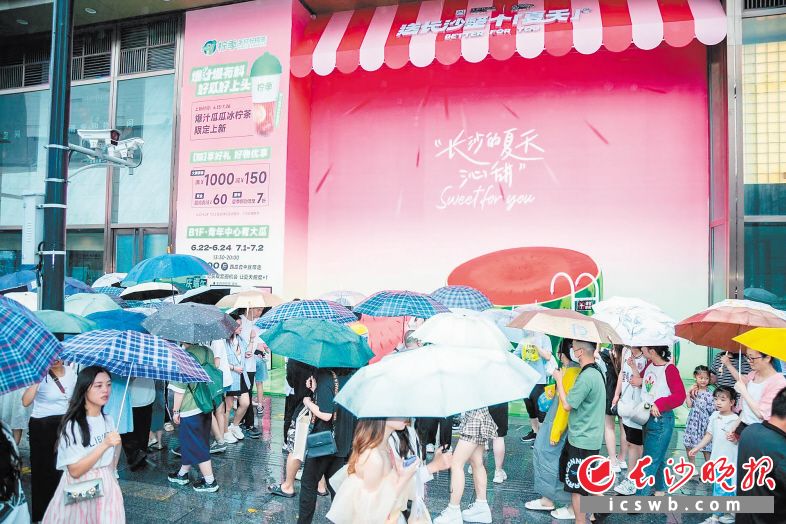 这个端午,在天心区五一商圈打伞逛街的市民游客。长沙晚报通讯员 李旦 供图