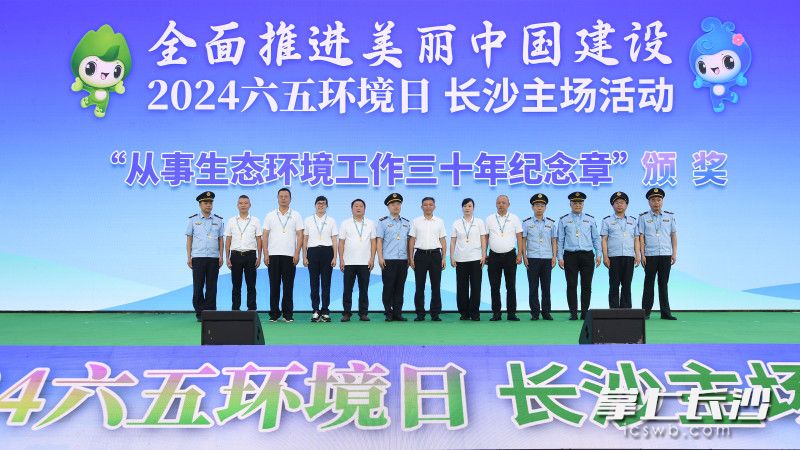 当日,长沙市12名“从事生态环境工作三十年纪念章”获得者获颁奖章。为激励生态环境系统干部职工担当作为,进一步增强职业荣誉感和使命感,生态环境部自2016年起,向各级生态环境部门及其所属单位工作满30周年的在职和离休人员授予“从事生态环境工作三十年纪念章”。