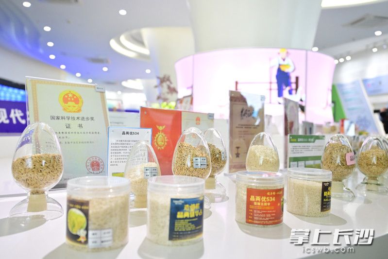 23日下午,采访团走进岳麓山实验室和岳麓山种业创新中心、华智生物技术有限公司展厅,这里的展台上,水稻、辣椒、油茶、油菜等不同品种、种类的种子琳琅满目。