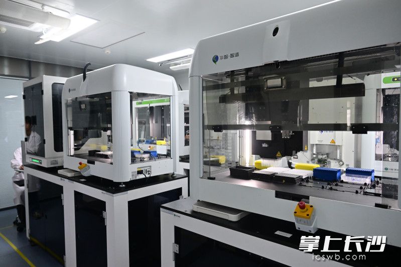 走进华智生物技术有限公司展示区,一个大型白色舱体设备格外引人注目,轻点屏幕,选取样本,自动化存取设备开始运作,随后,种质样本被取出。