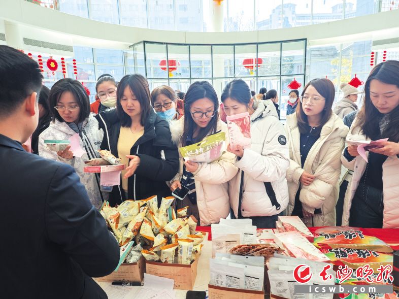 24日,在湘品走进新华社特色美食周活动上,新华社员工正在选购长沙特色产品。 长沙晚报全媒体记者 贺文兵 摄