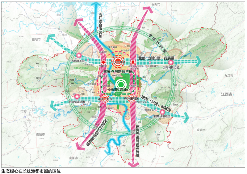 规划还强调,将按照“中国元素、湖湘韵味、丘陵特色”的要求,延续城镇乡村与山水田相融的传承肌理,构建山水连城的原生景观风貌、和谐统一的色彩风格与建筑形态,营造城乡融合的都市田园,让“湖湘味”和“现代风”相得益彰,将绿心打造为彰显湖湘特色的长株潭中央客厅。