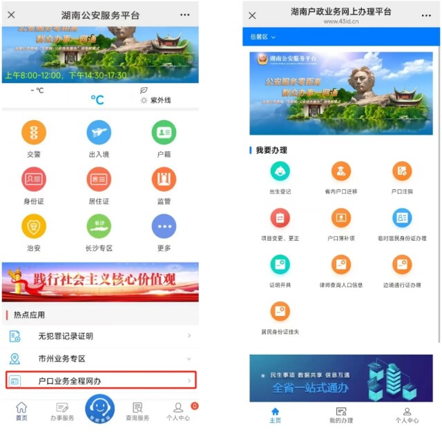 一、湖南户籍居民微信关注“湖南公安服务平台”公众号,注册并实名认证登录,点击“微警务”,进入平台首页,在热点应用栏中选择“户口业务全程网办”,或登录省政府“湘易办”APP首页,点击“户口业务全程网办”,点击进入湖南户政业务网上办理平台,在“我要办理”菜单中选择要申办的业务类型,阅读网办须知,填写相关信息,拍照上传证明材料,提交办件申请。