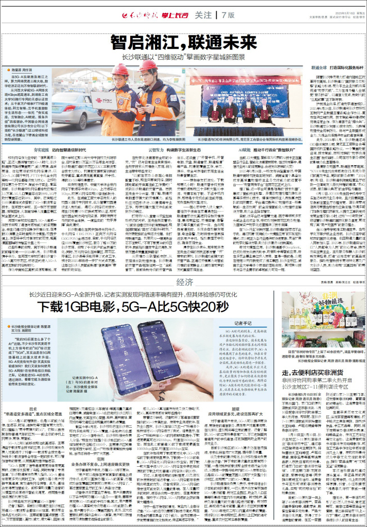 当5G信号穿越湘江联通世界,当数字化方案护航企业远航,长沙这座中部城市的国际化进程,也因联通力量的注入而愈加从容。2025年,长沙联通将始终以“人民邮电为人民”的初心使命,持续夯实主责主业,主动服务和融入长沙的新发展格局,打造“近悦远来”的高品质服务,推动数智新技术更好转化惠及广大长沙人民,助力实现“三高四新”的美好蓝图。