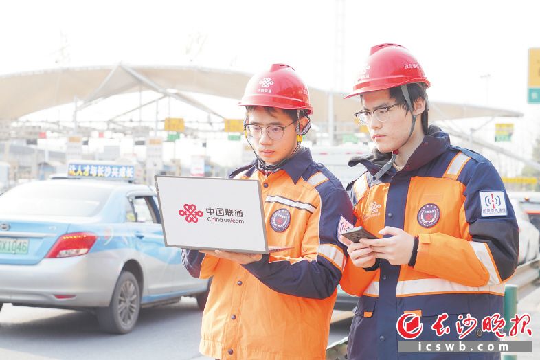长沙联通工作人员在高速路口测速。均为李惟娟供图