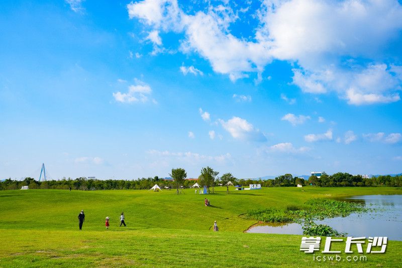 蓝天白云下的大泽湖近自然湿地公园。 均为长沙晚报全媒体记者邹麟、刘晓敏摄