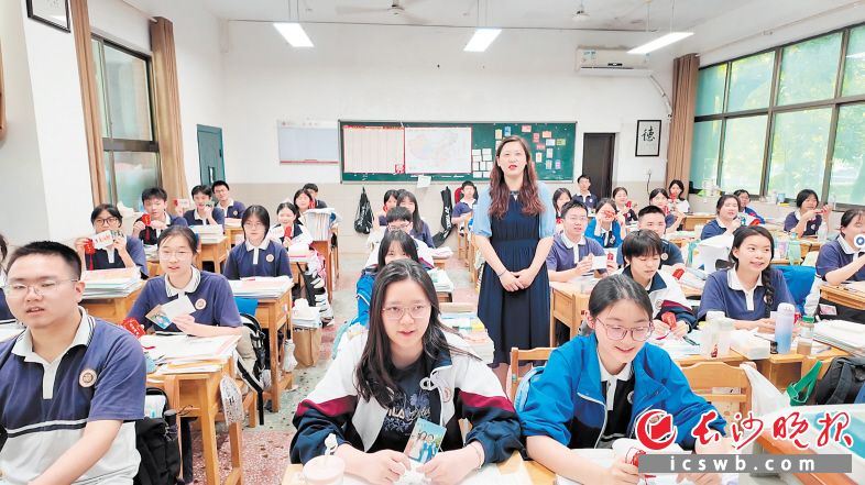 收到班主任的祝福“三件套”,K589班的同学们很开心。 长沙晚报全媒体记者 林暘 摄