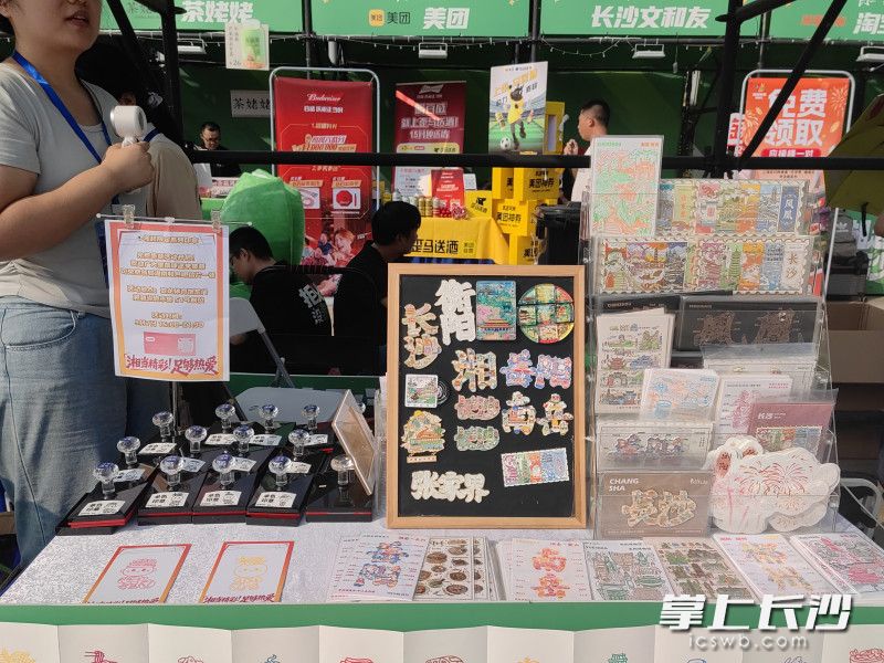 湘创主场则集中展示非遗文创作品,让传统工艺在现代设计中焕发新生。天心阁文创产品首次亮相“湘超”市集。其中,文创雪糕以天心阁楼体为造型,既消暑又充满趣味,许多市民纷纷手持雪糕与“湘超”背景板合影,称其为 “打卡神器”。现场市民坦言:“一边逛市集买文创,一边感受足球氛围,这种组合新鲜又有意义。”