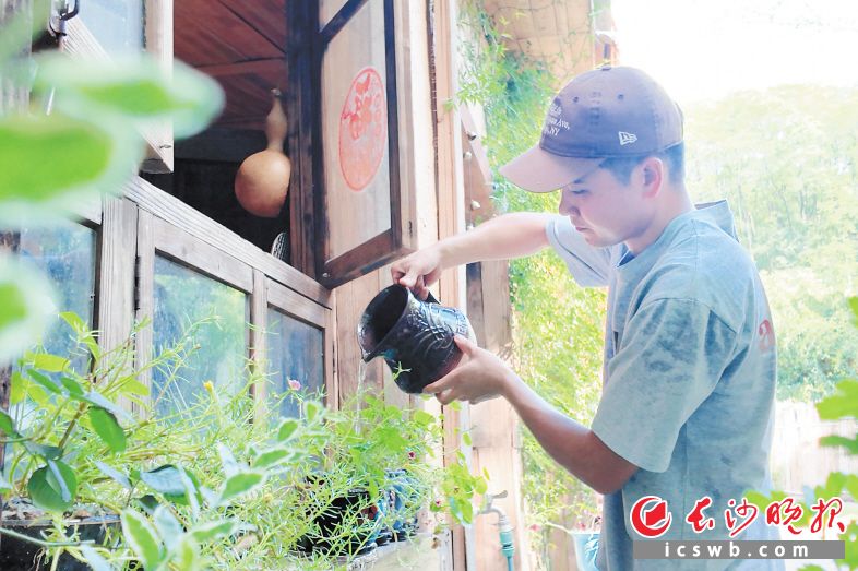 柿子树下艺术小院主理人潘聪喜欢与花花草草待在一起。 长沙晚报全媒体记者 刘攀 摄