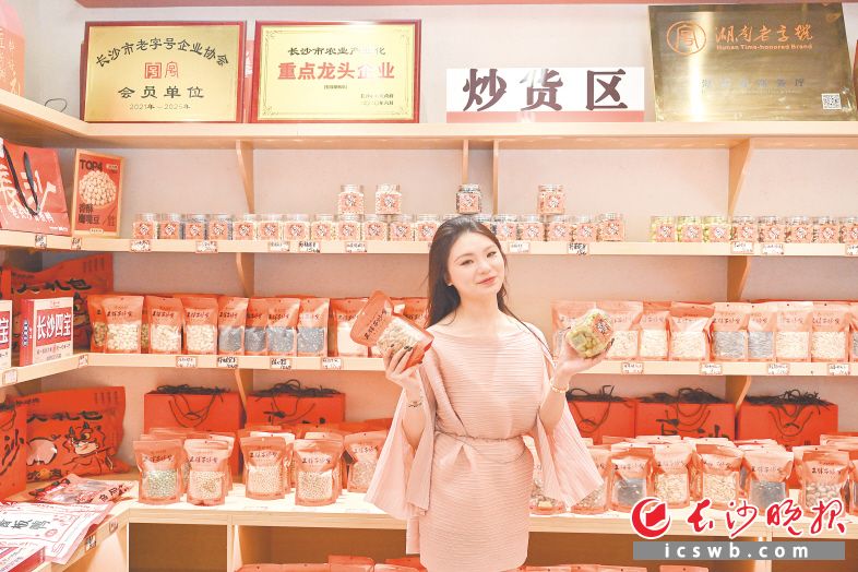 “王胖子炒货”品牌主理人、第六代传承人王昕宇为老字号代言。 长沙晚报全媒体记者 余劭劼 摄