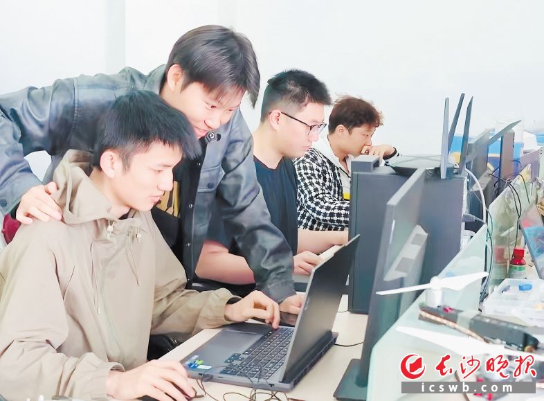 刘保男(左二)和大学生团队成员创办的企业获得了国家级“高新技术企业”称号。 长沙晚报通讯员 张奇涛 摄