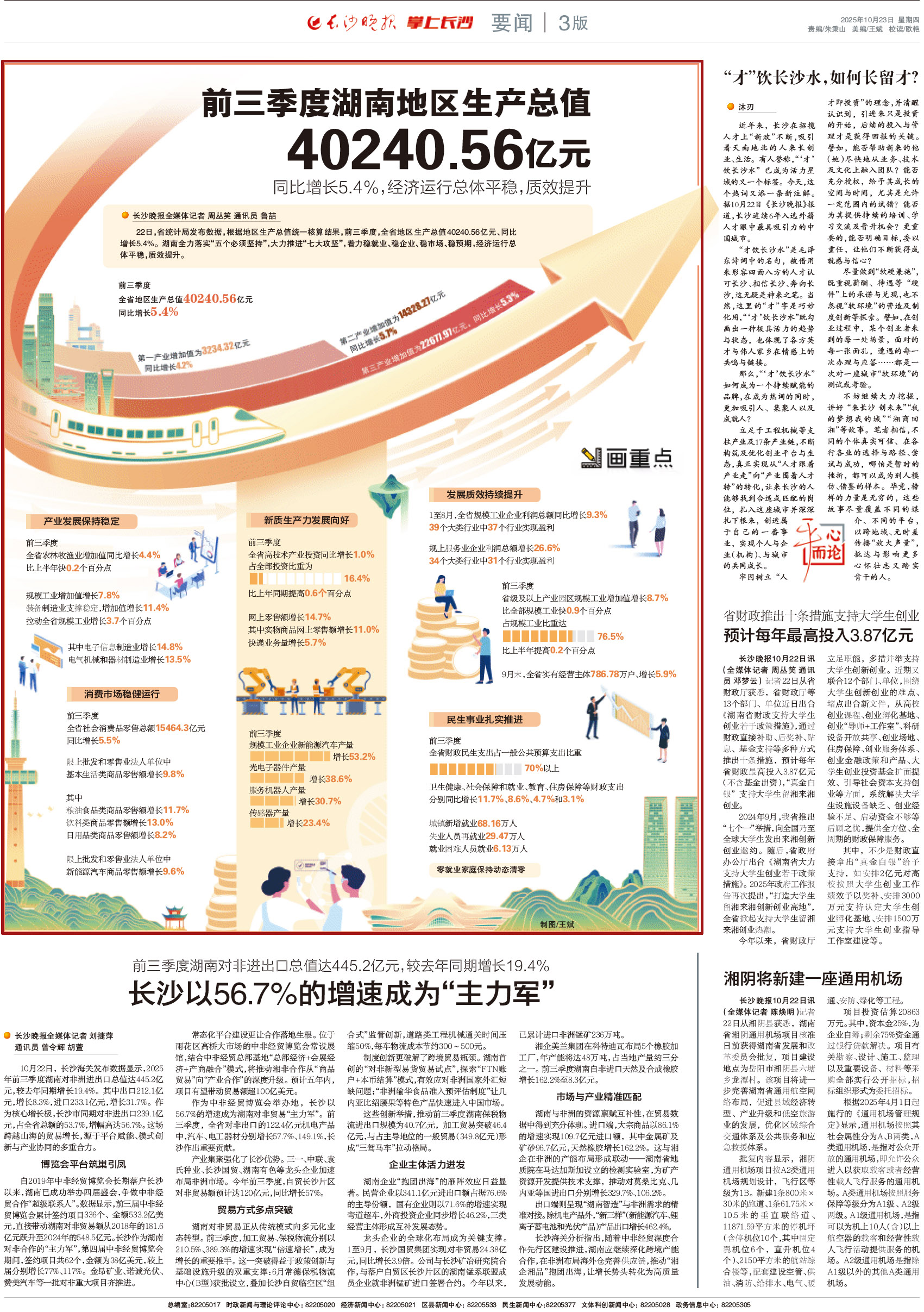 前三季度湖南地区生产总值40240.56亿元|画重点