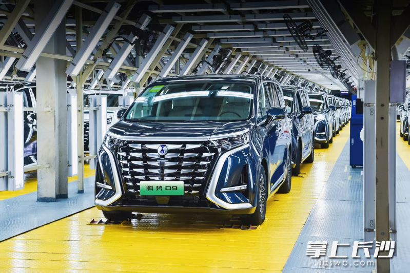 一台台腾势D9正从雨花经开区比亚迪工厂下线。均为资料图片