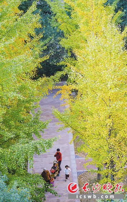 望城一小区 银杏变黄,给小区增添一抹亮色。